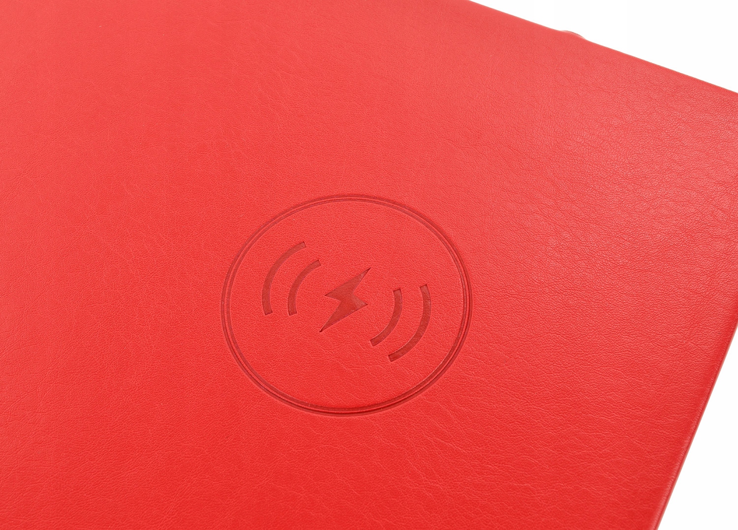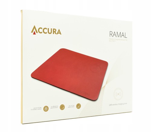 Accura Ramal to innowacyjna podkładka, która łączy w sobie wygodę bezprzewodowego ładowania technologią Qi z typową podkładką biurową. Wierzchnia strona podkładki została pokryta czerwoną ekoskórą, dzięki czemu wygląda wyjątkowo elegancko na biurku oraz zapewnia nieskrepowany ruch podczas pracy.