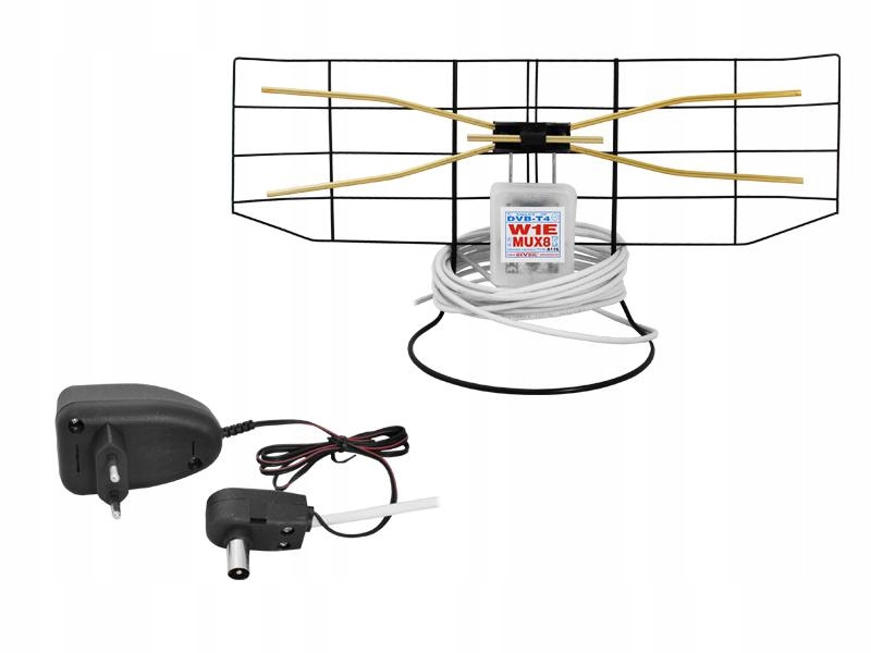 PS Antena DVB-T W1E siatkowa pokojowa, super mocna TV-MUX8 A116.