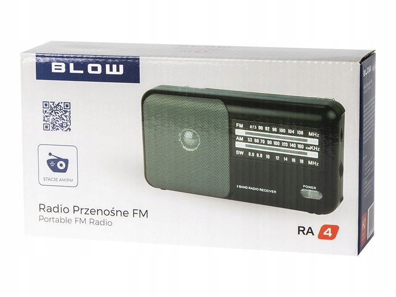 Przenośne radio FM Blow RA4 odbiera w częstotliwościach AM i FM pozwala odtwarzać muzykę z wybranej stacji radiowej. Radio zostało także wyposażone w obrotową antenę teleskopową oraz potencjometr regulacji głośności. Posiada dodatkowo wejście słuchawkowe jack 3,5mm. Urządzenie ma oryginalny wygląd, wpasuje się w każde wnętrze.