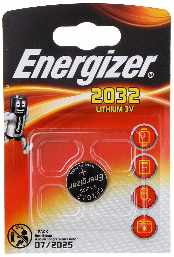 - Inne oznaczenia: 2032, DL2032, BR2032, KL2032, L2032, ECR2032, 5004LC, KCR2032, E-CR2032, KECR2032, SB-T15, L14