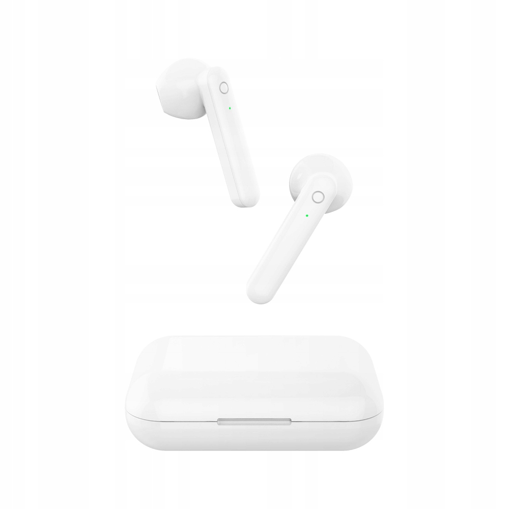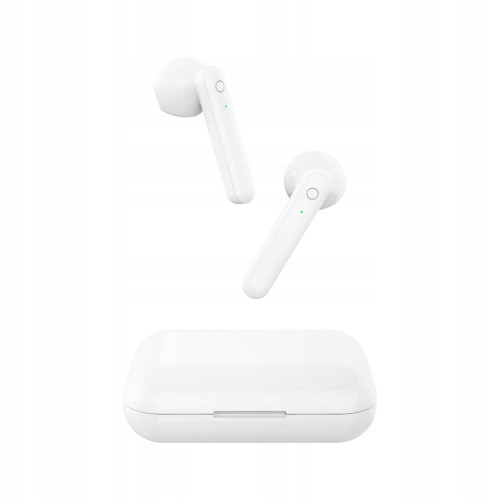 Podczas parowania urządzenia pojawia się stan naładowania słuchawek oraz etui. Opakowanie słuchawek jest jednocześnie power bankiem ładujemy je poprzez kabel dołączony w zestawie