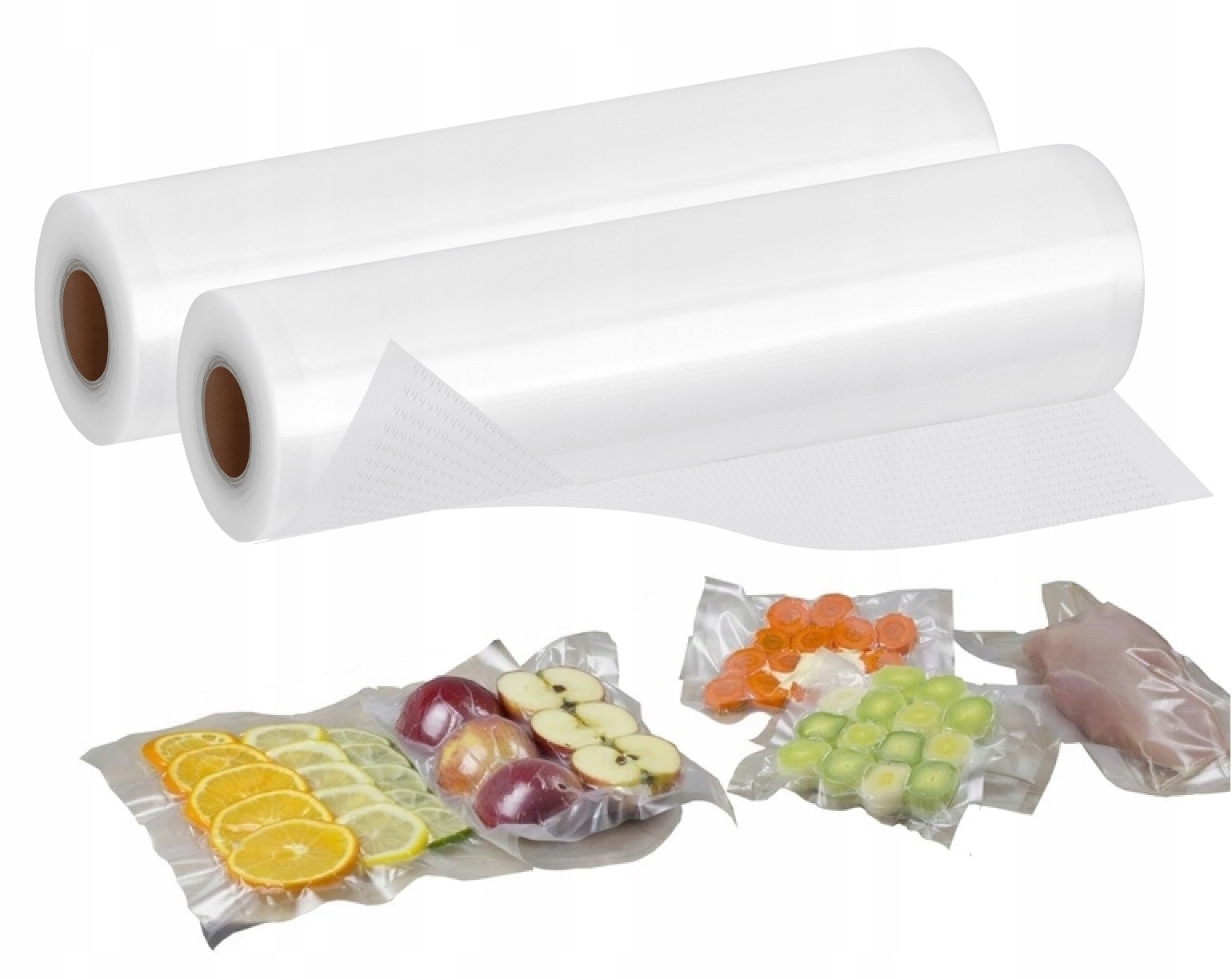 Pakując próżniowo żywność, nie tylko zapobiegasz marnowaniu jedzenia, ale także oszczędzasz. Tak przechowywana żywność jest dłużej świeża, nie obsycha i zachowuje swój smak oraz wartości odżywcze. Zgrzewarki próżniowe do prawidłowego działania potrzebują odpowiedniej folii do zgrzewania. W ofercie marki Teesa dostępna jest wykonana z solidnego i przeznaczonego do kontaktu z żywnością tworzywa, wysokiej jakości folia do zgrzewarek próżniowych. Zestaw zawiera 2 rolki folii do zgrzewania próżniowego o wymiarach 28x500cm. Wysoki poziom przejrzystości folii, pozwala na szybki wgląd w przechowywaną żywność.