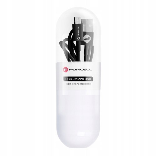 Kabel Forcell USB ze złączem micro USB pozwala naładować urządzenia i umożliwia przesyłanie danych. Akcesorium dostępne w kompaktowej tubie.
