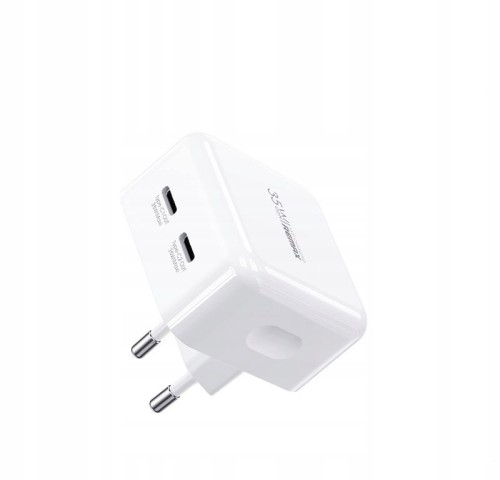 Ładowarka została wyposażona w dwa porty USB-C - możesz zasilać dwa urządzenia jednocześnie. Urządzenie wspiera protokoły szybkiego ładowania Power Delivery oraz Quick Charge.