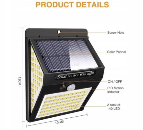 LAMPA SOLARNA 140 LED z czujnikiem ruchu