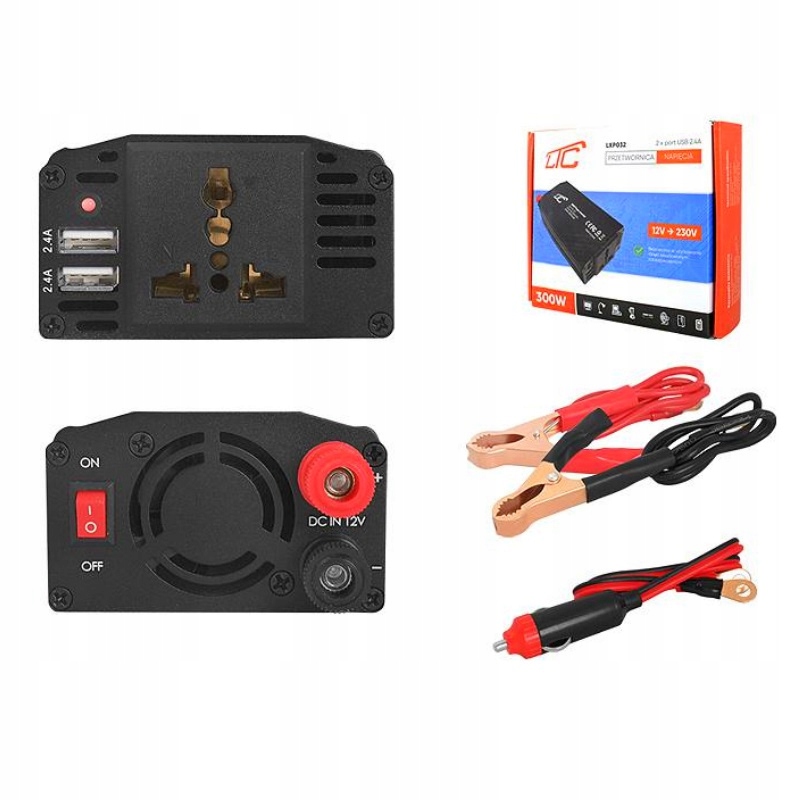 LTC przetwornica napięcia, sinusoida modyfikowana z DC 12V na AC 230V 300W + 2 x USB 2.4A