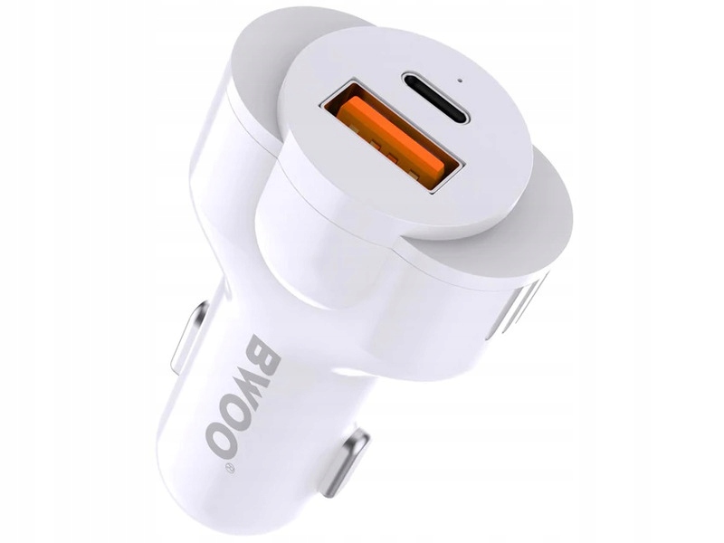 Ładowarka samochodowa CC58 marki BWOO została wyposażona w dwa gniazda USB A / USB-C PD, do których można wpiąć odpowiedni kabel do ładowania urządzeń mobilnych. Dzięki niewielkim wymiarom zajmuje mało miejsca. Z ładowarką samochodową BWOO nie musisz się już martwić o rozładowany telefon lub tablet w samochodzie. Wyposażona w dużą moc pozwoli ładować dwa urządzenia jednocześnie.