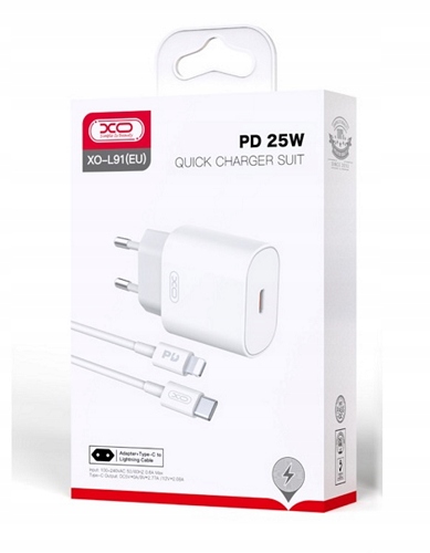 XO ładowarka sieciowa L91 PD 25W 1x USB-C biała + kabel USB-C - Lightning