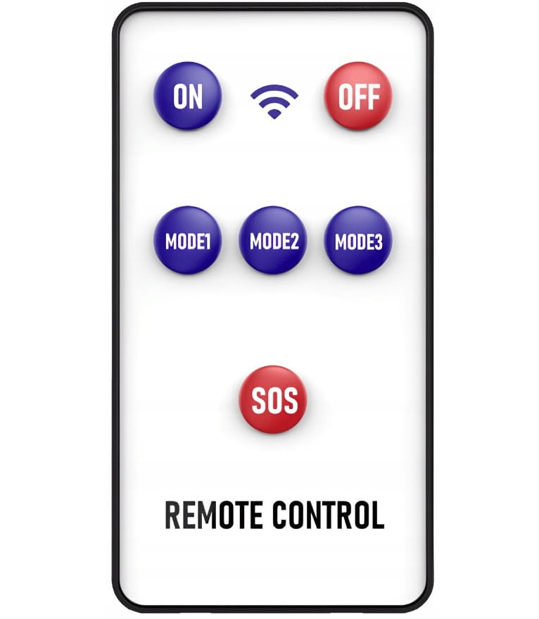 Wygodne sterowanie lampą odbywa się przy pomocy pilota. Posiada on przyciski Off i On oraz 4 tryby przełączania: