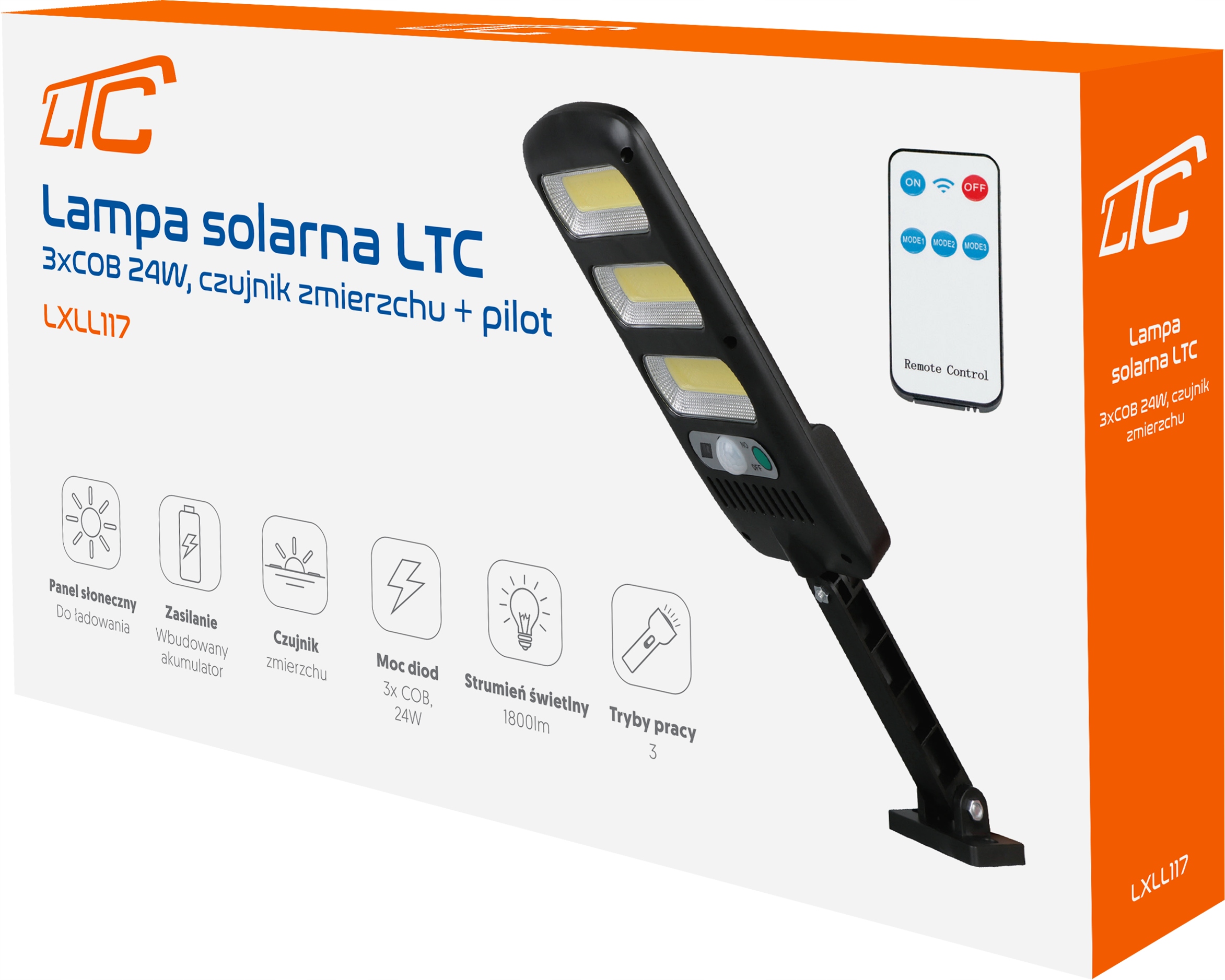 Lampa uliczna 24 W 1800 lm zasilanie solarne