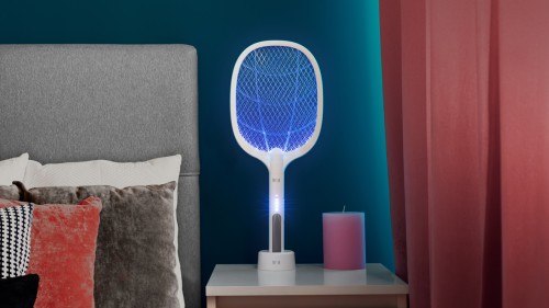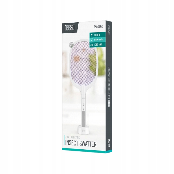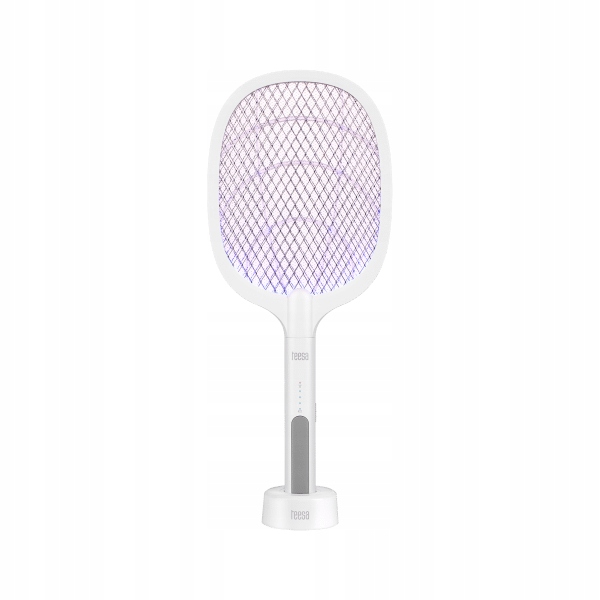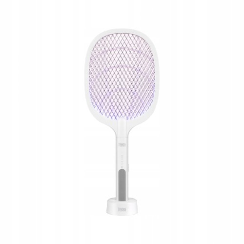 W zestawie znalazła się także praktyczna podstawka, która jest zarazem stacją dokującą. Pozwala ona zamienić łapkę elektryczną w stojącą lampkę owadobójczą UV.
