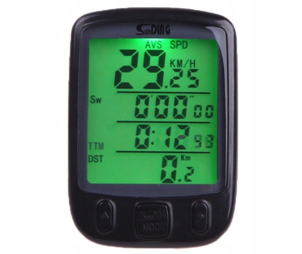 Zaawansowany, przewodowy licznik rowerowy, całkowicie wodoodporny! Wyposażony w duży i czytelny wyświetlacz z zielonym podświetleniem. Licznik posiada aż 25 funkcji wyszczególnionych w dalszej części opisu. Doskonale sprawdzi się nawet w zastosowaniach profesjonalnych dzięki mnogości analizowanych i na bieżąco wyświetlanych danych. Niezależny od zasilania bateryjnego dzięki standardowemu sposobowi komunikacji z rowerem (kabelek z sensorem). Urządzenie jest bardzo proste w montażu i wodoodporne! Sprawdzi się w każdych, nawet najgorszych warunkach atmosferycznych. Licznik marki SunDing to najlepsze rozwiązanie na rynku! Świetnie nadaje się na drobny upominek nawet dla zapalonych kolarzy!