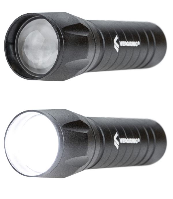 ✅ Skupienie światła latarki można regulować od wąskiego o dalekim zasięgu do szerokiego oraz oświetlającego boczną przestrzeń.