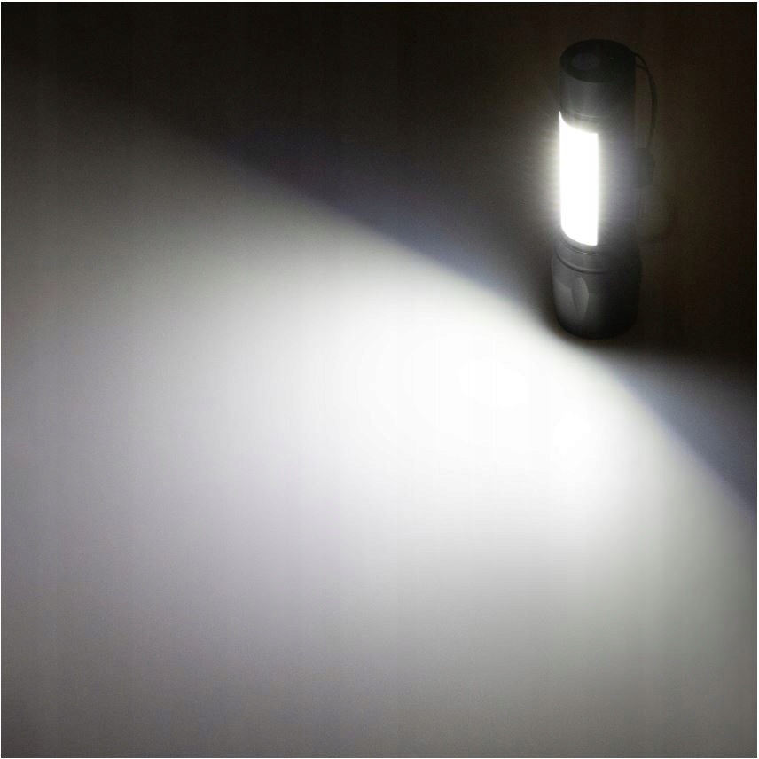 ✅ Mała latarka COB jest zbudowana z aluminium co pozwala nam na jej szerokie zastosowanie. Wbudowane ma diody COB , które umożliwiają korzystanie z niej aż do 100000 godzin.