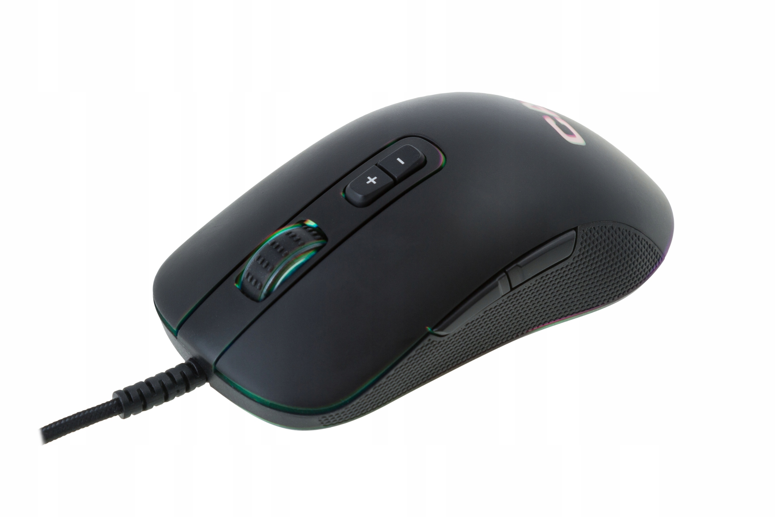 Myszka została wyposażona w najnowocześniejszy sensor optyczny PWM 3360, który oferuje pełen zakres rozdzielczości - od 100 do 12000 DPI i bez problemu, nie tracąc na płynności i czasie reakcji, porusza się po niemal każdej powierzchni. DPI ustawisz umieszczonymi nad rolką przyciskami + i -.