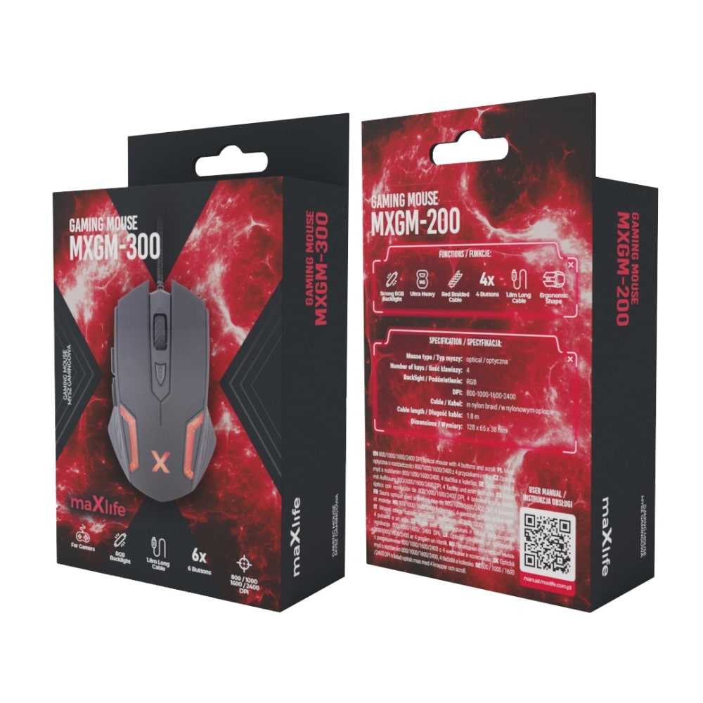 Maxlife Gaming mysz przewodowa MXGM-300 800/1000/1600/2400 DPI 1,8m czarna