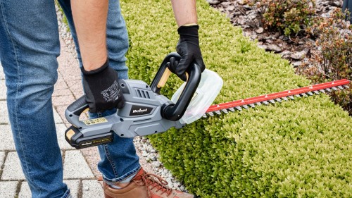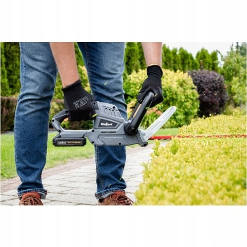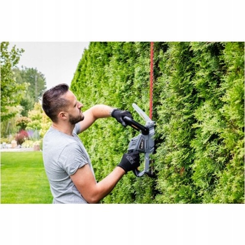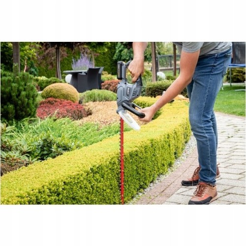 Jeśli wkładasz dużo wysiłku w to, by krzewy i żywopłot w Twoim ogrodzie były pięknie przycięte, mamy coś co pomoże Ci zaoszczędzić mnóstwo czasu i wysiłku! Zastąp tradycyjne nożyce ręczne akumulatorowymi nożycami do żywopłotów z serii Rebel Tools. Urządzenie posiada wytrzymałe, wycinane laserowo, stalowe ostrze o długości 520 mm, które pozwoli na szybkie, wygodne i precyzyjne przystrzyżenie nawet szerokich żywopłotów. Dla zwiększenia wygody i bezpieczeństwa nożyce zostały wyposażone w przedni uchwyt oraz osłonę ochronną.