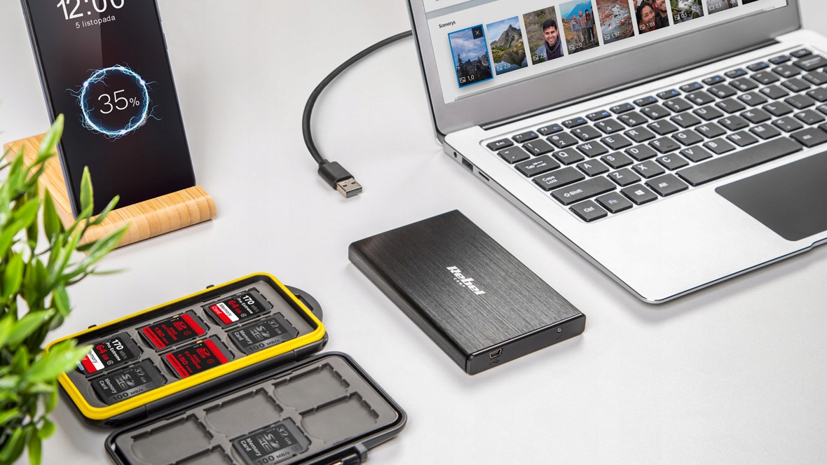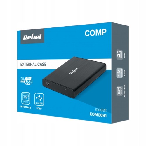 Obudowa dysku zewnętrznego marki Rebel jest kompatybilna z 2,5-calowymi dyskami SATA I/II/III - o maksymalnej pojemności 2 TB. Co ważne, jest też ona bardzo uniwersalna, bo obsługuje zarówno dyski HDD, jak też SSD, i wspiera wszystkie popularne systemy operacyjne, tj. Windows. iOS oraz Linux. W obudowie zastosowano interfejs USB 2.0, który umożliwia transfer danych z prędkością do 60 MB/s.