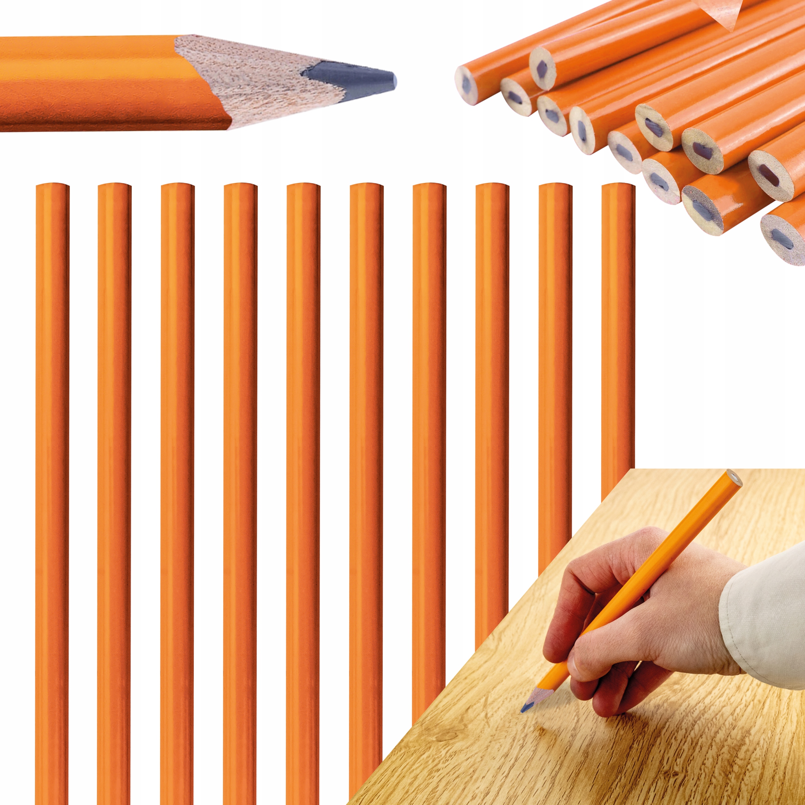 Ołówki wykonane są z trwałego drewna z rysikiem o twardości HB, co gwarantuje ich wytrzymałość i długą żywotność. Ergonomiczna forma zapewnia wygodne i pewne trzymanie w dłoni, co ułatwia pracę nawet w trudnych warunkach.