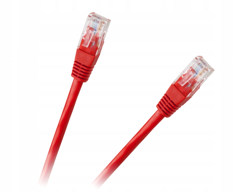 Komputerowy patchcord UTP zakończony z obu stron wtykami RJ-45, o długości 1,0m w kolorze czerwonym, wykorzystywany do połączenia urządzenia końcowego (komputera, drukarki ...) z routerem bądź switchem.
