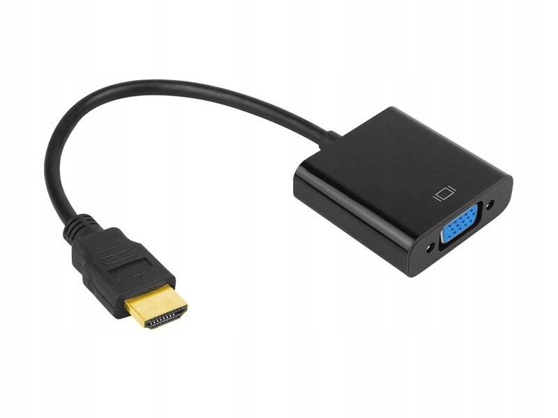 Adapter HDMI - VGA. Konwerter przetwarza sygnał cyfrowy na sygnał analogowy. Przejściówka pozwala na podłączenie monitora lub projektora ze złączem VGA D-SUB do dowolnego urządzenia wyposażonego w złącze HDMI np. smartfona, tableta, laptopa, komputera, aparatu cyfrowego, tunera satelitarnego czy konsoli. Konwersja działa tyko w jednym kierunku z HDMI do VGA.