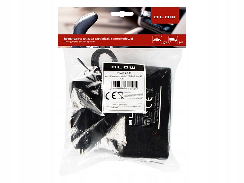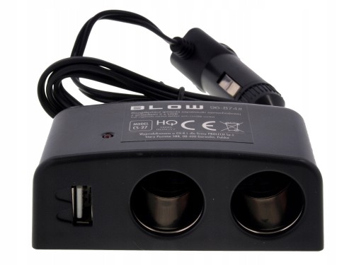 Rozgałęźnik gniazda zapalniczki samochodowej 2x + 1x USB 12-24V 10A Blow