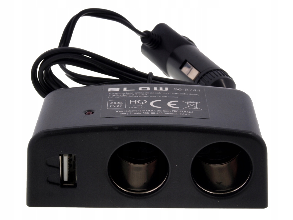 - Rozgałęźnik: 2x gniazdo zapalniczki