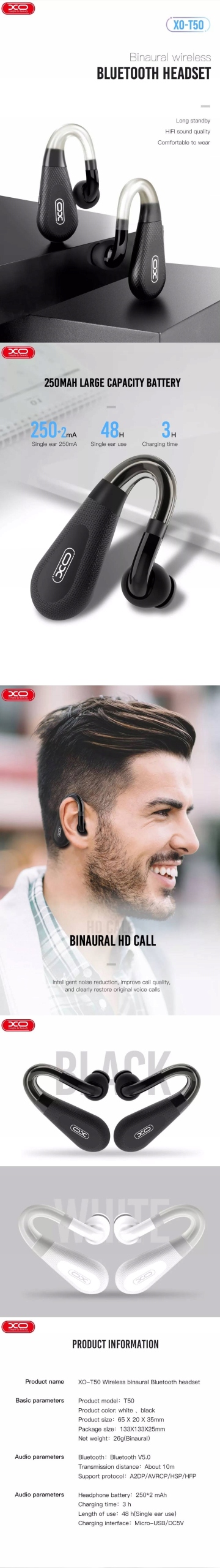 XO T50 to słuchawki sportowe bluetooth. Są wygodne w noszeniu i nie przeszkadzają w uprawianiu codziennych aktywności. Wbudowana bateria pozwoli na nie przejmowanie się czy starczy jej do końca treningu a nawet na kilka następnych.