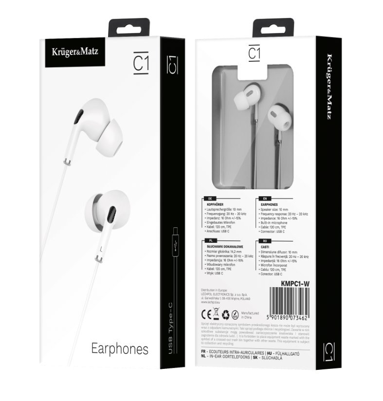 Słuchawki douszne z mikrofonem na USB-C Kruger&Matz C2 czarne