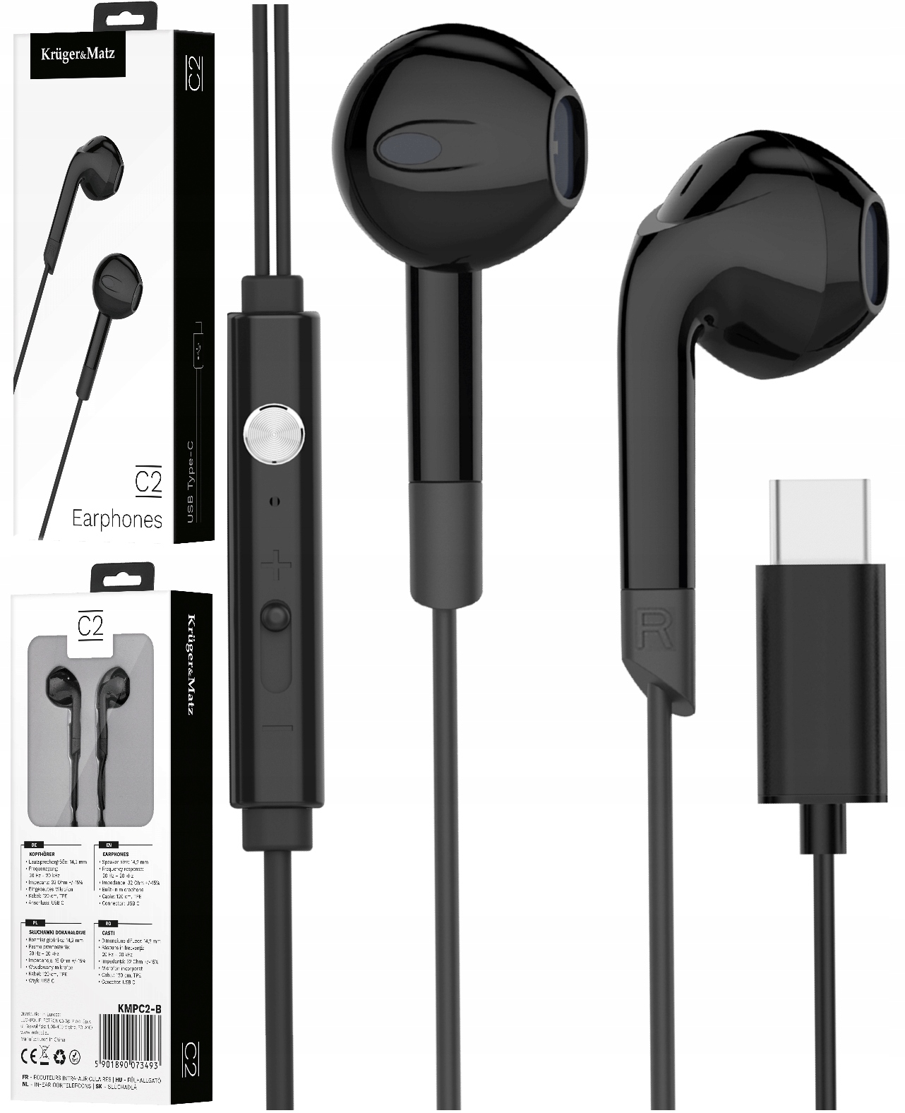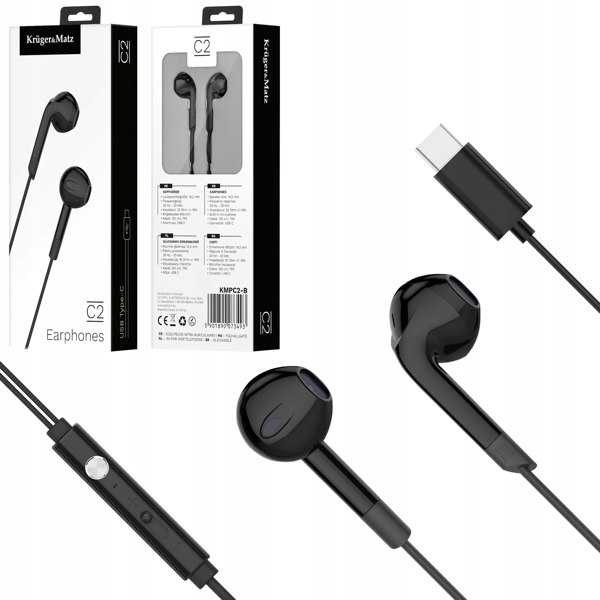 Słuchawki douszne z mikrofonem na USB-C Kruger&Matz C2 czarne
