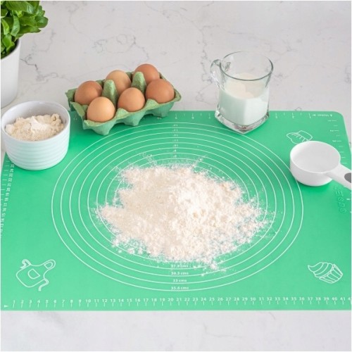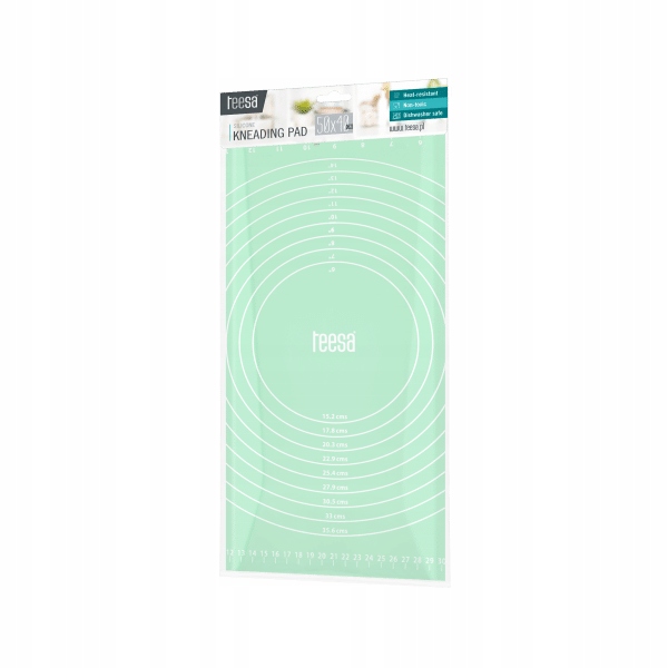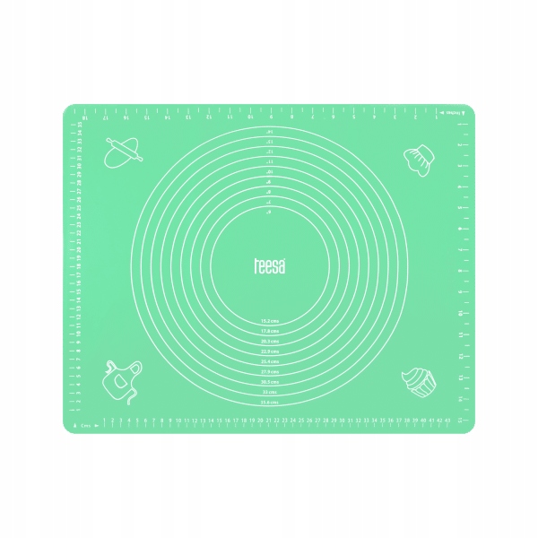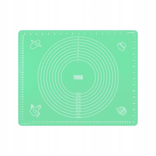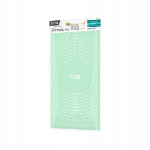 Jedną z podstawowych zalet stolnicy z silikonu jest nadrukowanie miarek, które umożliwiają np. wyrobienie ciasta na pizzę o konkretnej średnicy. Silikonową stolnicę do ciasta Teesa charakteryzuje także wysoki komfort użytkowania. Wykorzystane materiały sprawiają, że wyrabiane ciasto nie przywiera do powierzchni roboczej, ale jej spód przykleja się do blatu zapobiegając przesuwaniu. Co ważne, silikonowa stolnica nie pochłania zapachów, a po skończonej pracy możesz umyć ją w zmywarce.