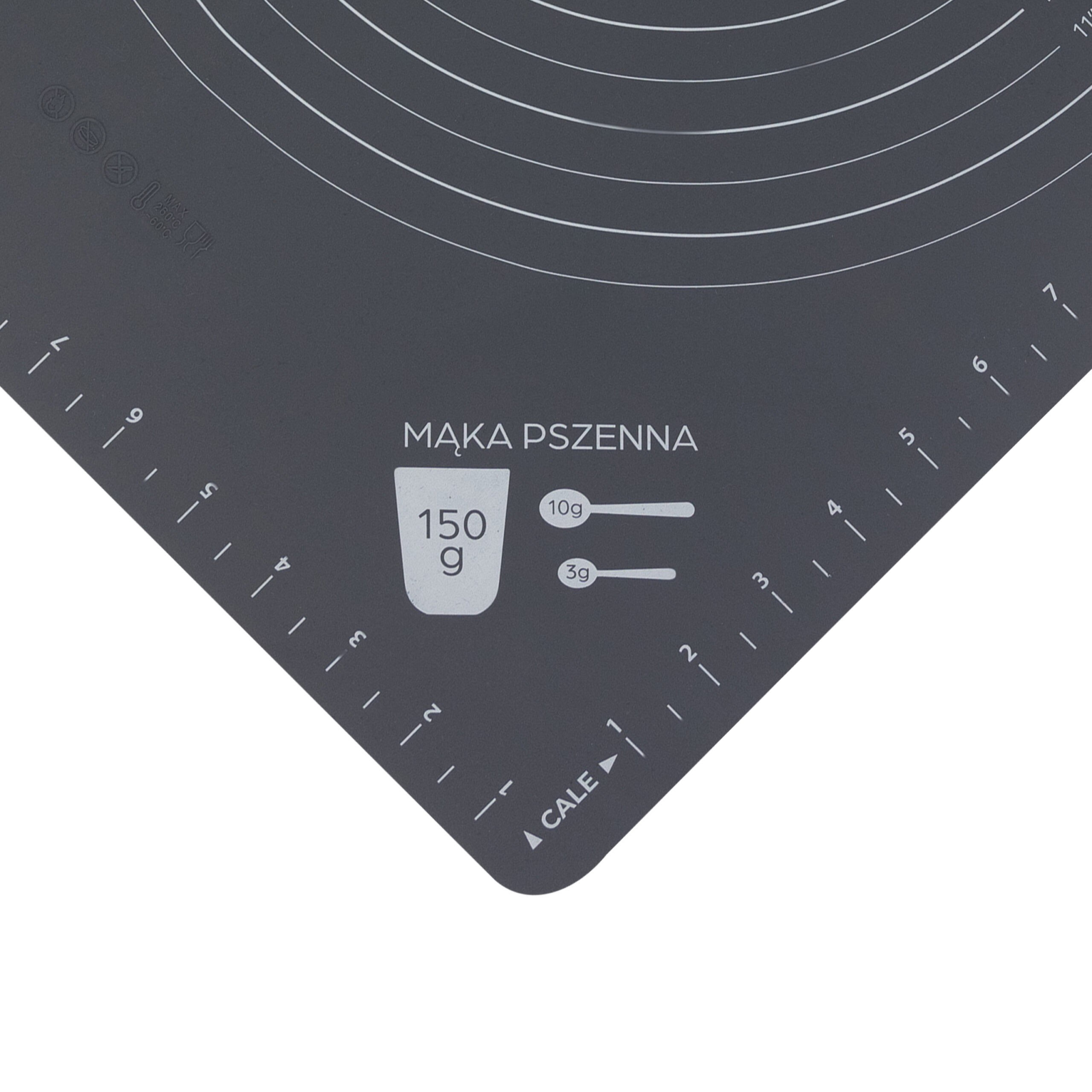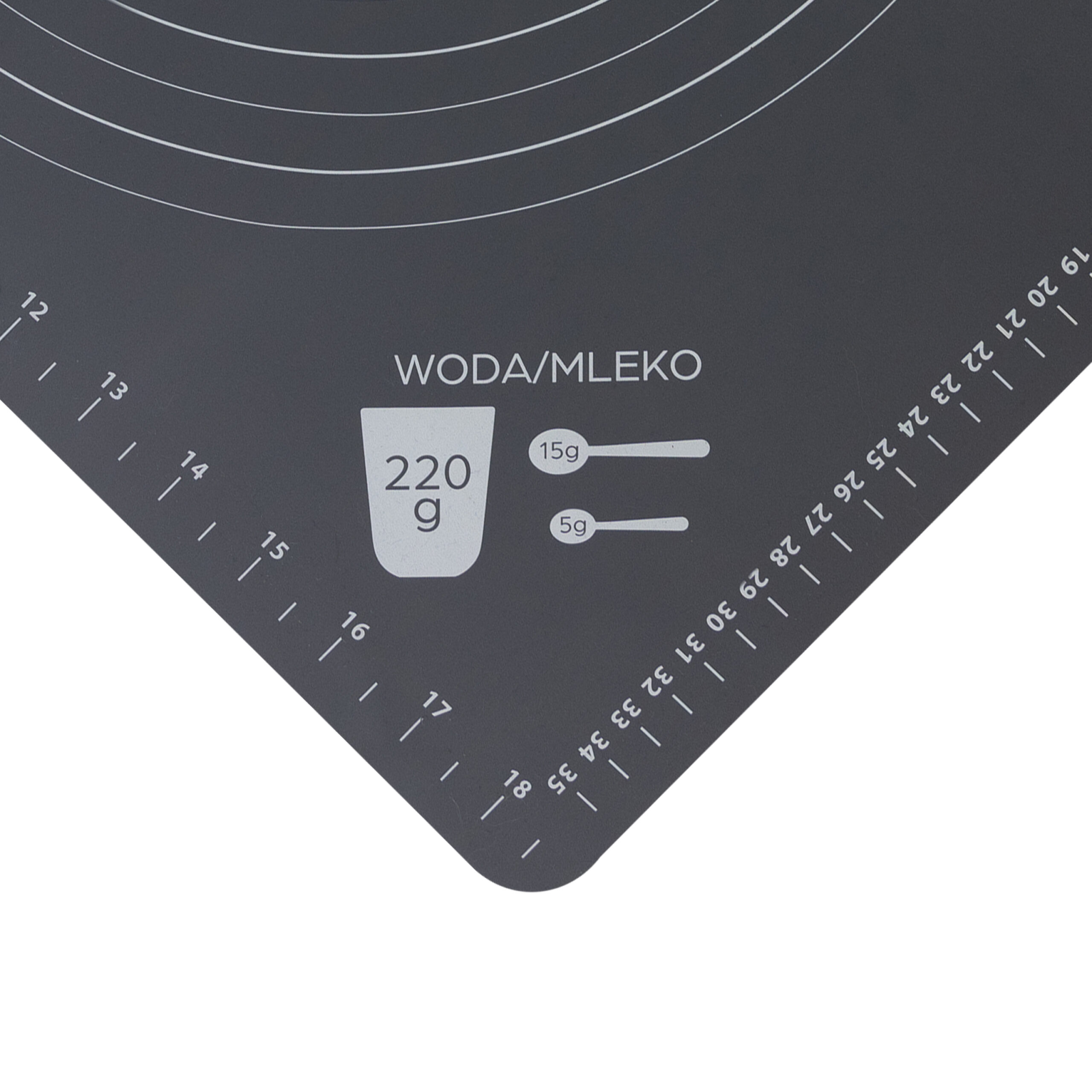 Gładka powierzchnia maty sprawia, że ciasto nie przywiera. Nadaje się do mycia w zmywarce.