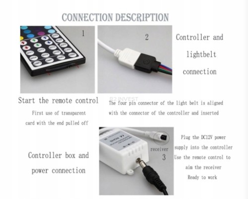 Taśma sterowana jest przez podczerwień przy pomocy pilota dołączonego do zestawu.