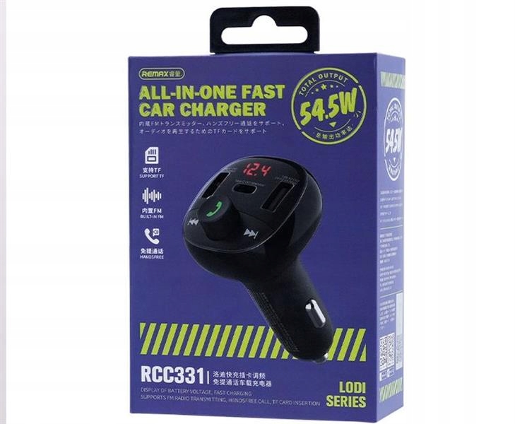 TRANSMITER ŁADOWARKA SAMOCHODOWA PD QC 54,5W REMAX LODI SERIES ALL IN ONE RCC-331 * CZARNY