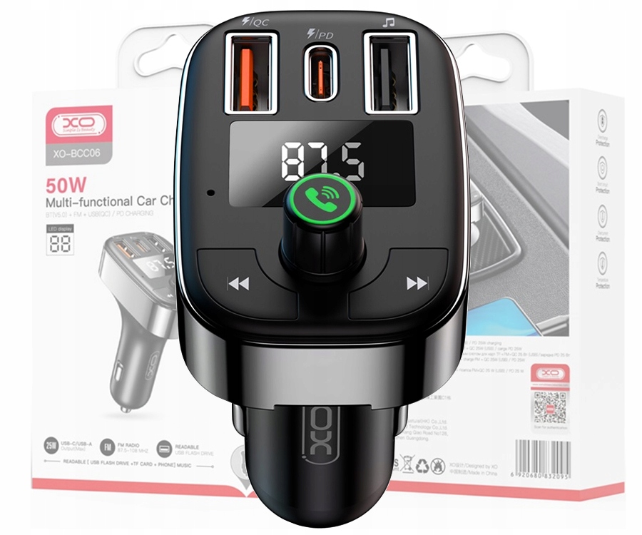 Transmiter FM z szybkim ładowaniem PD Quick Charge 4.0
