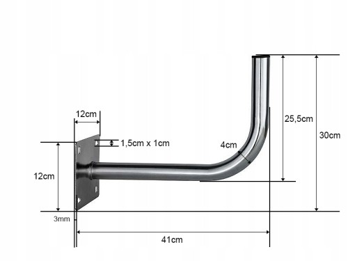 Maszt antenowy kątowy z czołowym montażem. Najlepsza stal gwarantuje, że uchwyt będzie odporny na panujące na zewnątrz warunki atmosferyczne przez wiele lat, a kapturek umiejscowiony na końcu rury zapobiega przedostaniu się wody do jej wnętrza. Maszt idealny do montażu każdego typu anten: naziemnej, satelitarnej, radiowej oraz internetowej. Maszt do montażu na elewacji, murze oraz innej płaskiej powierzchni.