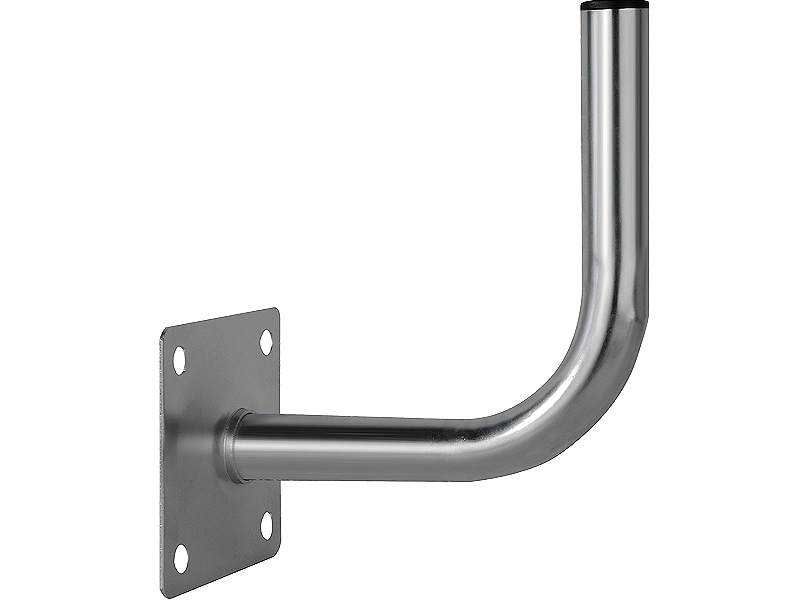 Maszt antenowy kątowy z czołowym montażem. Najlepsza stal gwarantuje, że uchwyt będzie odporny na panujące na zewnątrz warunki atmosferyczne przez wiele lat, a kapturek umiejscowiony na końcu rury zapobiega przedostaniu się wody do jej wnętrza. Maszt idealny do montażu każdego typu anten: naziemnej, satelitarnej, radiowej oraz internetowej. Maszt do montażu na elewacji, murze oraz innej płaskiej powierzchni.