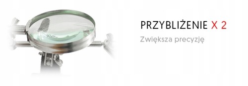 Lupą można dowolnie obracać i przesuwać wzdłuż prowadnicy dostosowując powiększenie tam gdzie jest ono najbardziej potrzebne, tym sposobem ułatwiając sobie precyzyjną pracę przy dwukrotnym powiększeniu.