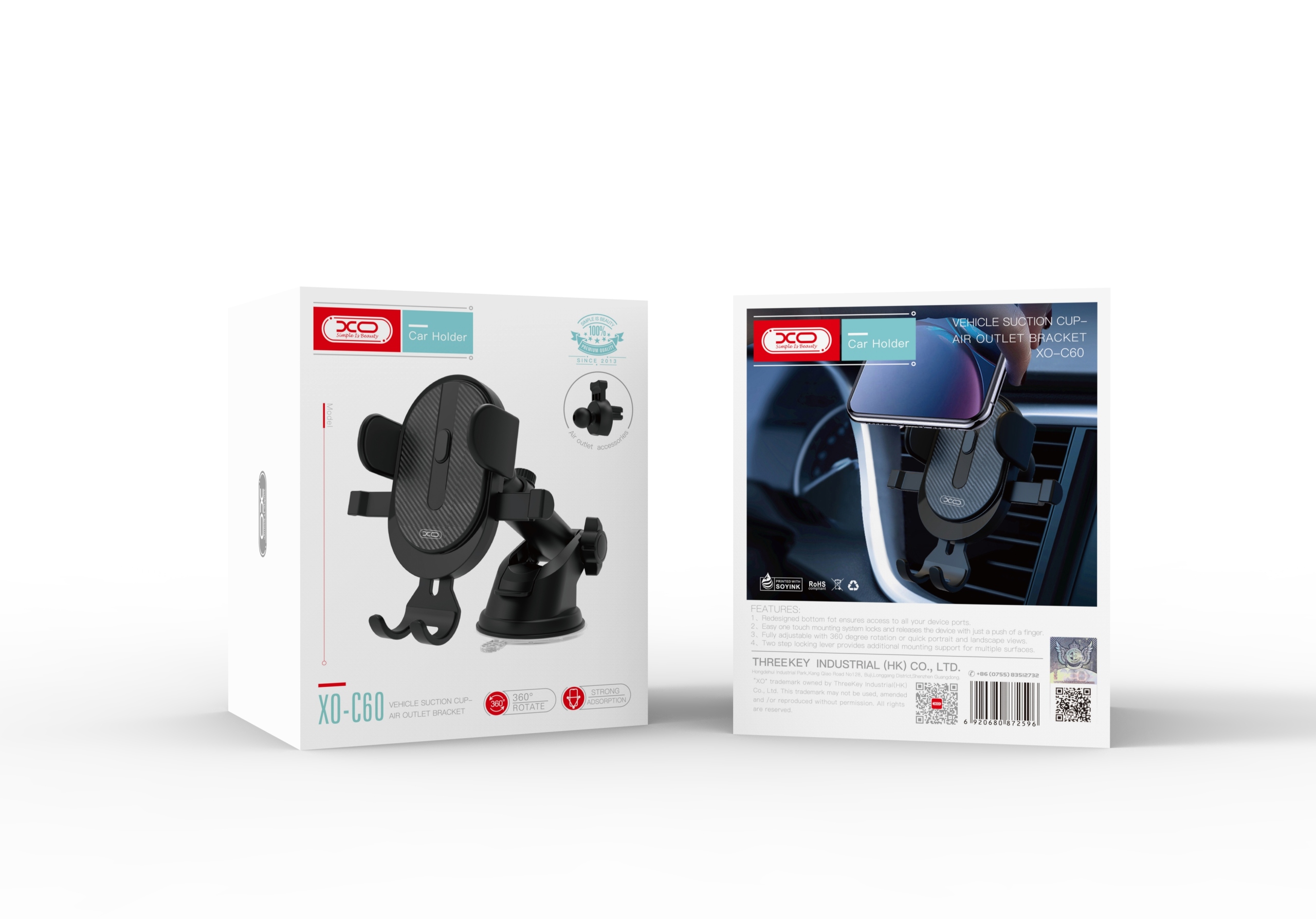 XO-C60 to grawitacyjny uchwyt samochodowy w uniwersalnej wersji do kratki wentylacyjnej / na szybę samochodową / na pulpit samochodu . Pozwala na dogodne umiejscowienie urządzenia w zasięgu wzroku i rąk kierowcy. Wygoda w użytkowaniu pozwala na szybkie odkładanie i wyciąganie telefonu jedną ręką. Dodatkowo można regulować długość ramienia .Całość wykonana jest z wysokiej jakości tworzywa . Uchwyt sygnowany jest marką XO co zapewnia wysoką jakość produktu