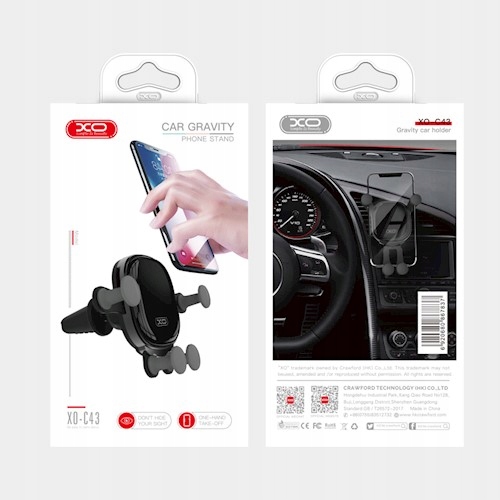 XO C43 to grawitacyjny uchwyt samochodowy do kratki wentylacyjnej, który pozwala na dogodne umiejscowienie urządzenia w zasięgu wzroku i rąk kierowcy. Wygoda w użytkowaniu pozwala na szybkie odkładanie i wyciąganie telefonu.