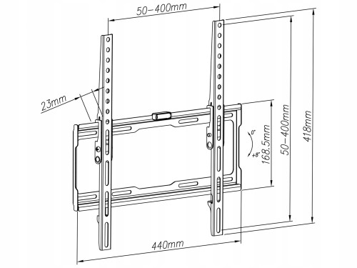 Zastosowany najbardziej popularny standard VESA sprawia, że możemy zainstalować praktycznie każdy telewizor wyposażony w otwory o rozstawie 75 x 75, 100 x 100, 150 x 100, 200 x 100, 200 x 150, 200 x 200, 200 x 300, 300 x 200, 300 x 300, 300 x 400, 400 x 200, 400 x 400 i wadze nie przekraczającej 35kg.