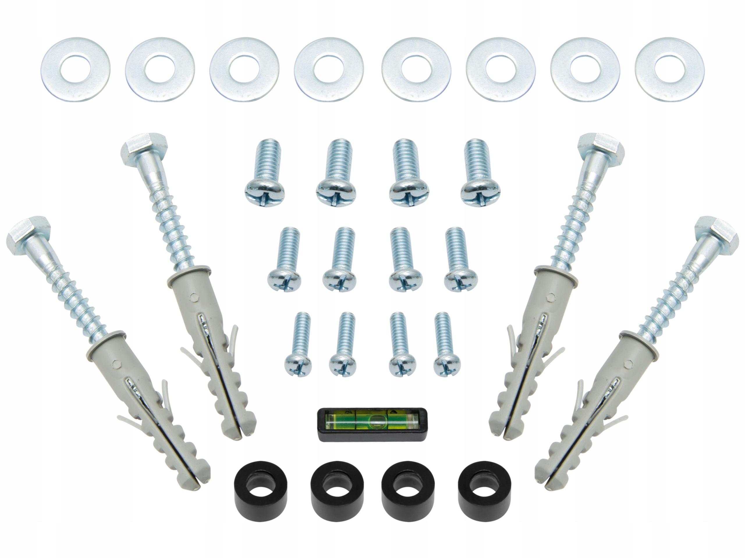 Do zestawu dołączona jest instrukcja, dzięki czemu montaż jest wyjątkowo prosty i intuicyjny, każdy użytkownik powinien poradzić sobie z jego instalacją. Dodatkowo w zestawie znajduje się poziomnica, która ułatwi precyzyjny montaż.