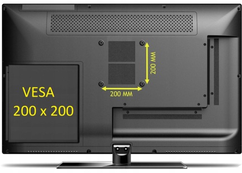 Przykład,(VESA 200x200 -> odstęp otworów 200mm x 200 mm). Pierwszy parametr to odległość między otworami w poziomie (lewy - prawy), drugi w pionie (górny - dolny).