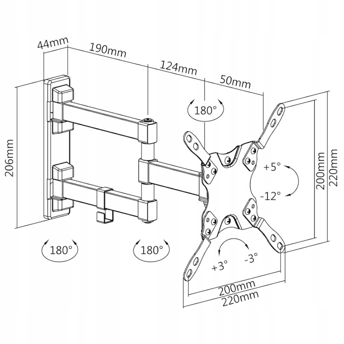Uchwyt z możliwością regulacji odległość od ściany w zakresie: 60 ~ 364 mm.