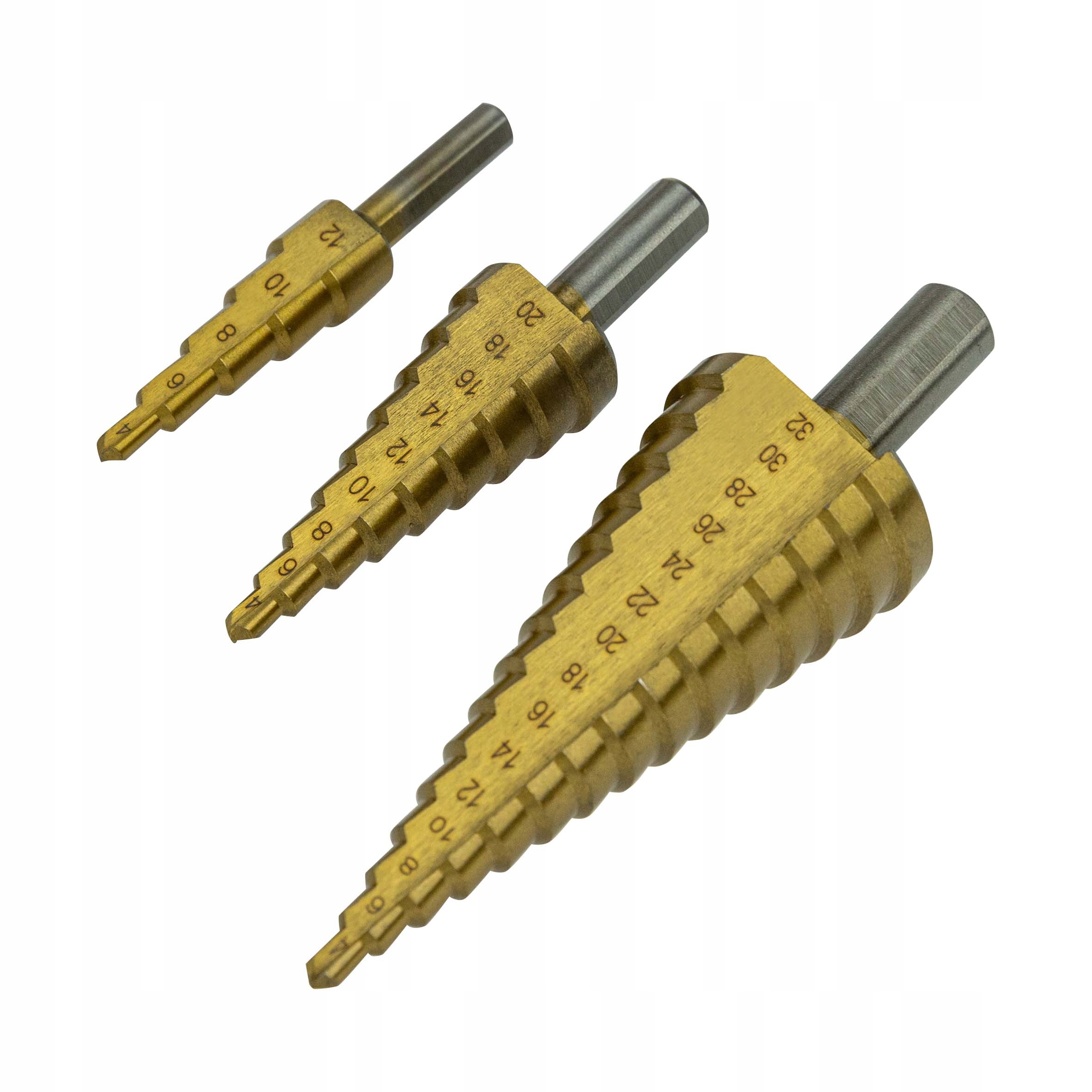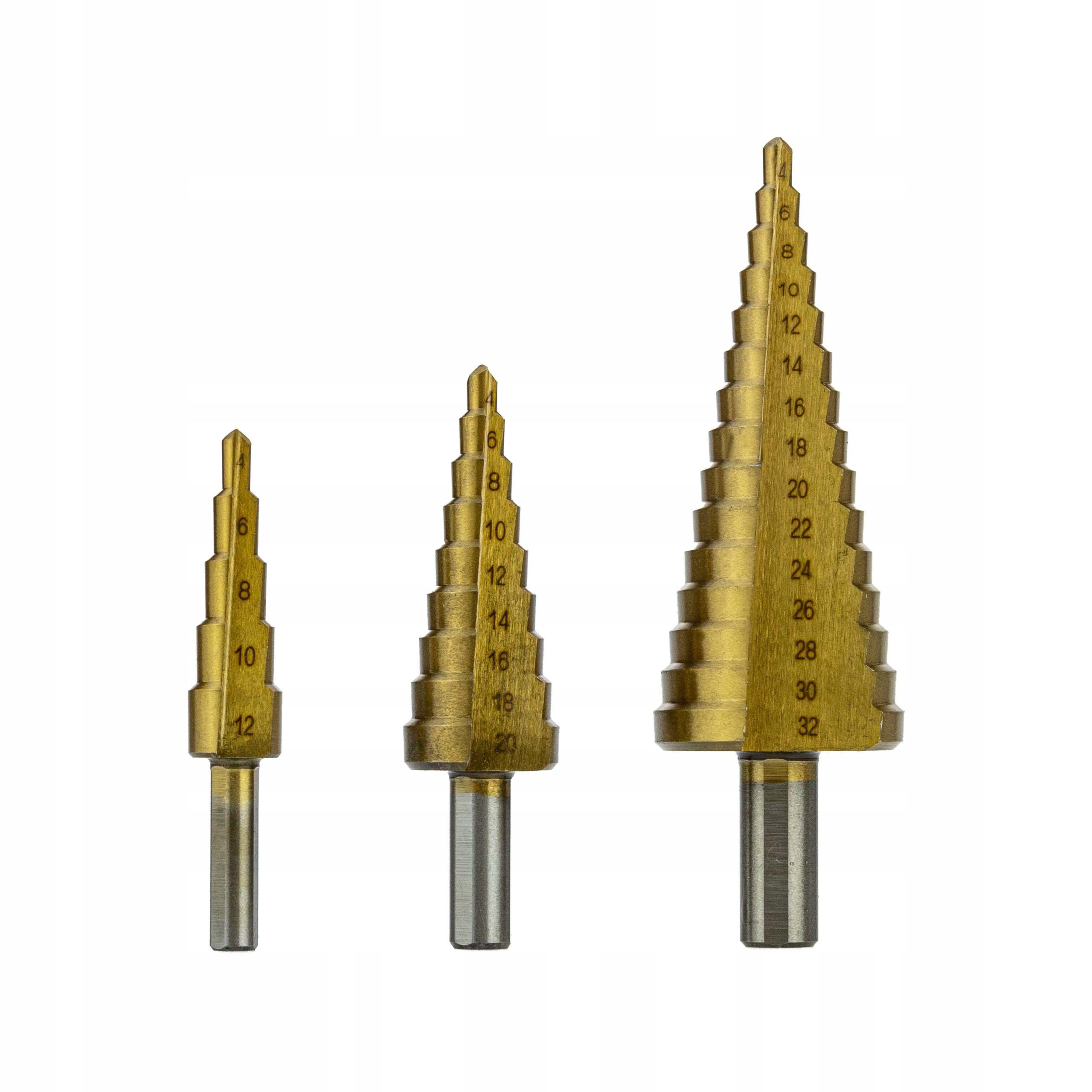 WIERTŁA STOŻKOWE STOPNIOWE HSS 4-32mm KOMPLET 3SZT