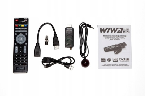 Nowoczesny tuner drugiej generacji WIWA H.265 MINI do montażu w niewidocznym miejscu z tyłu telewizora. Komunikacja z pilotrem odbywa się za pomocą dołączonego dyskretnego odbiornika podczerwieni. Tuner obsługuje darmowe kanały nadawane w naziemnej telewizji cyfrowej w najnowszej technologii H.265/HEVC. Jest to standard, który będzie obowiązywał w Polsce. Tuner jest kompatybilny ze starszymi technologiami H.264 i MPEG-4, które są aktualnymi standardami nadawania w Polsce. Tuner posiada dostęp do Internetu realizowany za pośrednictwem anteny Wi-Fi łączonej przez port USB (zestaw nie zawiera anteny Wi-Fi). Tuner jest sterowany pilotem z funkcją Memo Control (programowalne przyciski umożliwiające obsługę dekodera i odbiornika TV jednym pilotem). OSD w języku polskim wyświetlane na ekranie telewizora jest przejrzyste, intuicyjne i łatwe w obsłudze. Całość zamknięta w małej solidnej obudowie.
