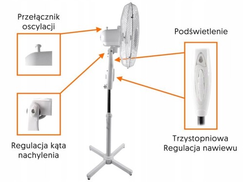 Wentylator LTC oferuje również możliwość regulacji kąta nachylenia czaszy, co powoduje pionową zmianę kierunku nawiewu. Dzięki regulowanej wysokości stojaka, urządzenie można dopasować do indywidualnych potrzeb użytkownika.