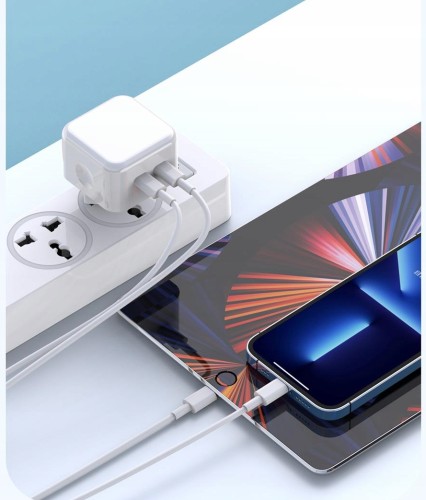 XO PD 35W 2x USB-C biała + kabel USB-C - USB-C